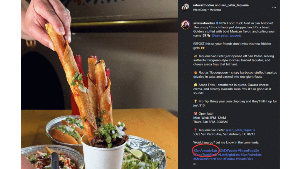 Head to Instagram, look up food-related hashtags like #SanAntonioFoodie or #SanAntonioEats (for example), and take a look through the posts that come up.