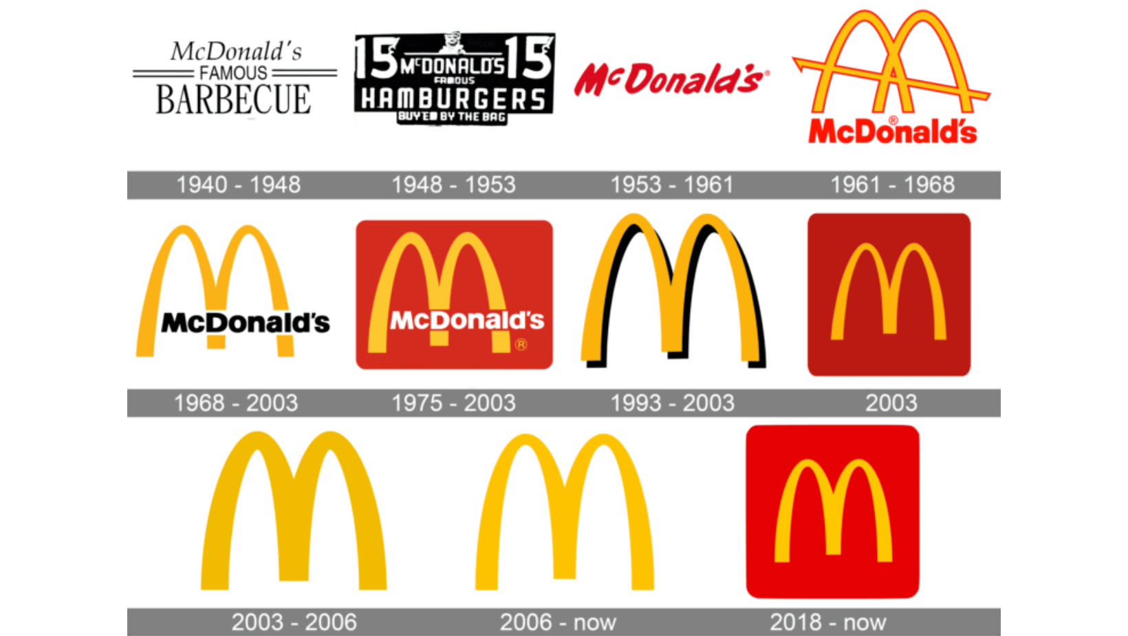 McDonald’s is an expert in the restaurant branding game. They’ve been subtly (and not-so-subtly) redesigning their logo pretty consistently since the 1940s, making changes to the logo as recently as 2018.